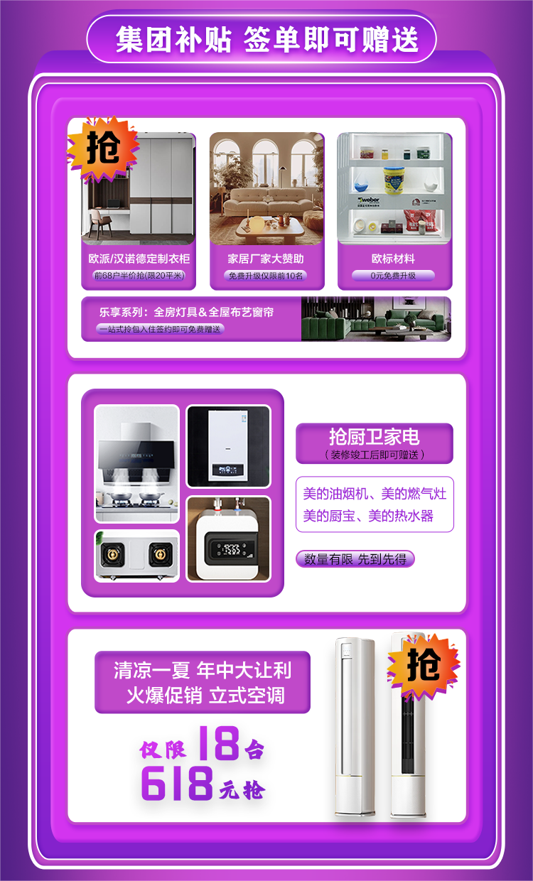 在這個炎炎夏日里,選擇我們一家一裝飾618定裝修,半價搶定制”活動,讓您輕松擁有高品質的家居空間,享受更加舒適和美好的生活。期待您的光臨和參與!